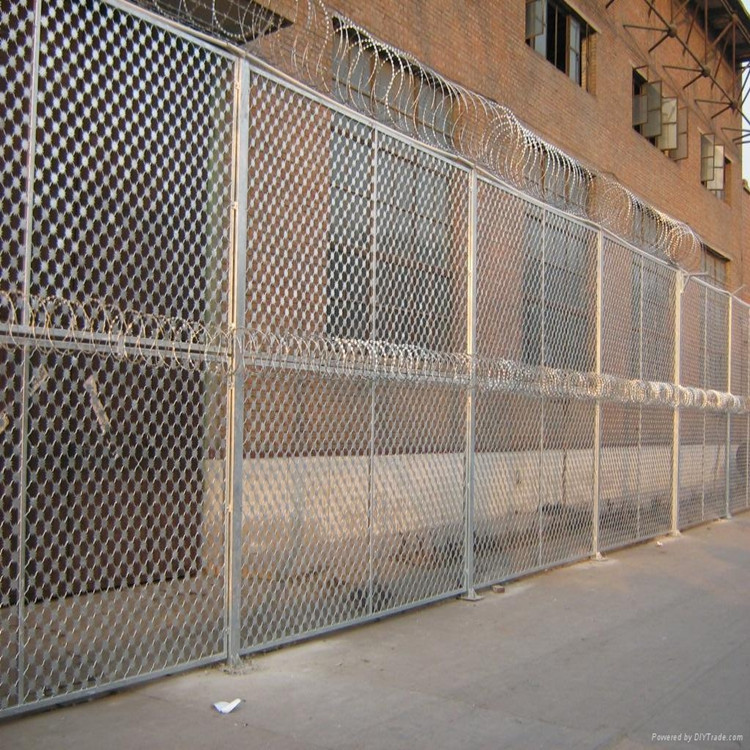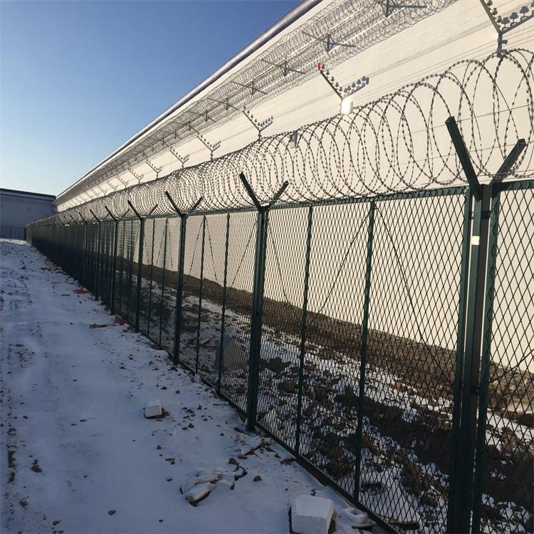 監獄高度戒備監獄隔離網一般有刀刺焊接網、有鋼筋焊接網、也有鋼板沖壓型鋼網墻。還有梅花刺太陽花的鋼網墻。根據地區以及上地區的