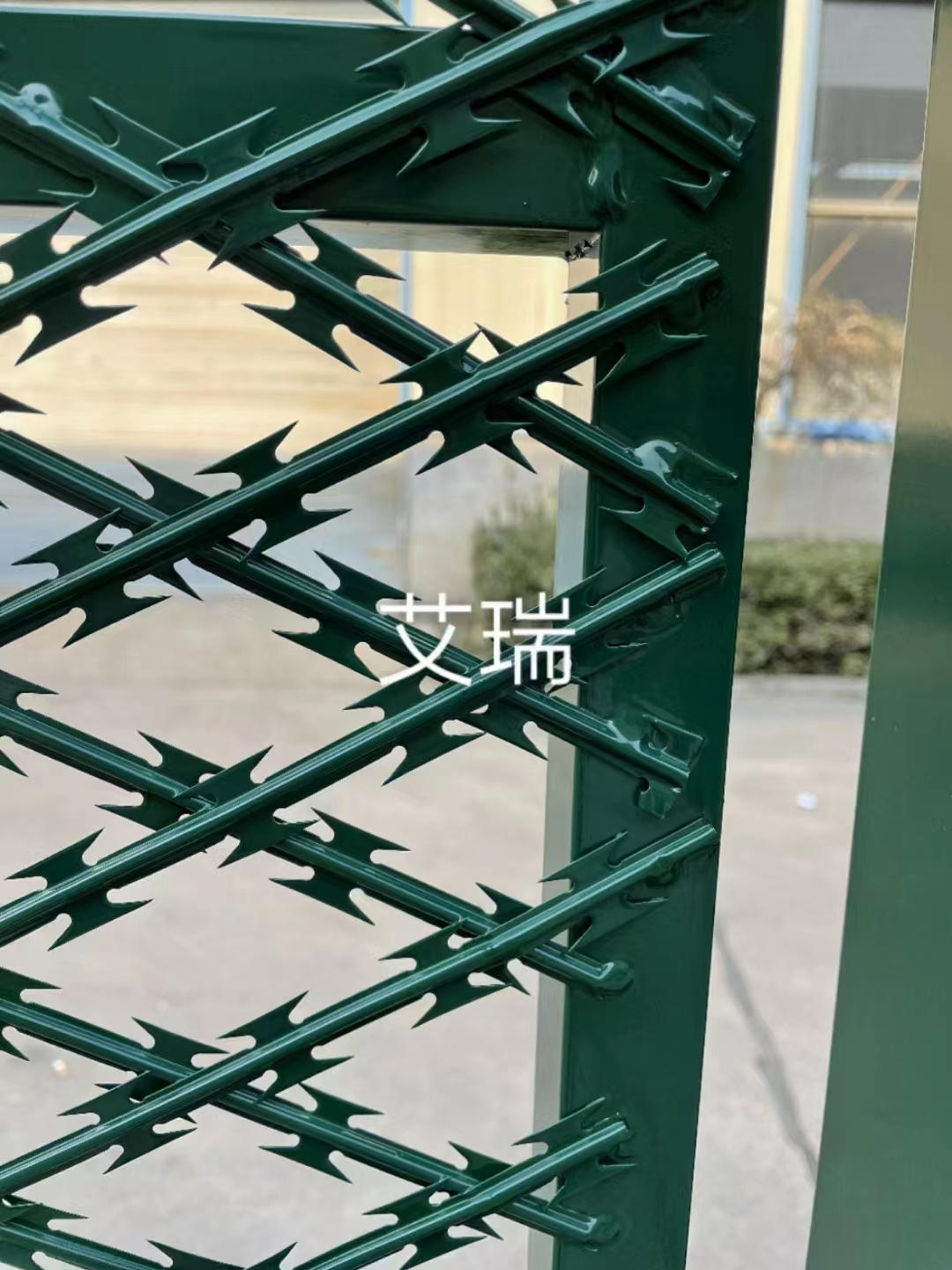 監(jiān)獄、看守所使用不銹鋼刀剌網(wǎng)搭配金屬鋼網(wǎng)墻的好處,不銹鋼刀剌網(wǎng)采用鋼板(刀板)沖壓成型包附于鋼絲(芯線)之上,由銳利尖角鍍鋅鋼板或不銹鋼薄板做刀片,高張力鋼絲做芯線組合而成的。有的地方叫它蛇腹形刀剌網(wǎng),因?yàn)槿腿χg都用卡扣固定,依次下去整個刀刺網(wǎng)拉伸開以后都是連接在一起的,圈徑有50公分和60公分,這都是常用尺寸。金屬鋼網(wǎng)墻的支撐立柱頂部會焊接Y叉型固定架。每個單臂45公分50公分長,焊接兩個固定刺繩鉤。用來固定不銹鋼刀刺網(wǎng)。
