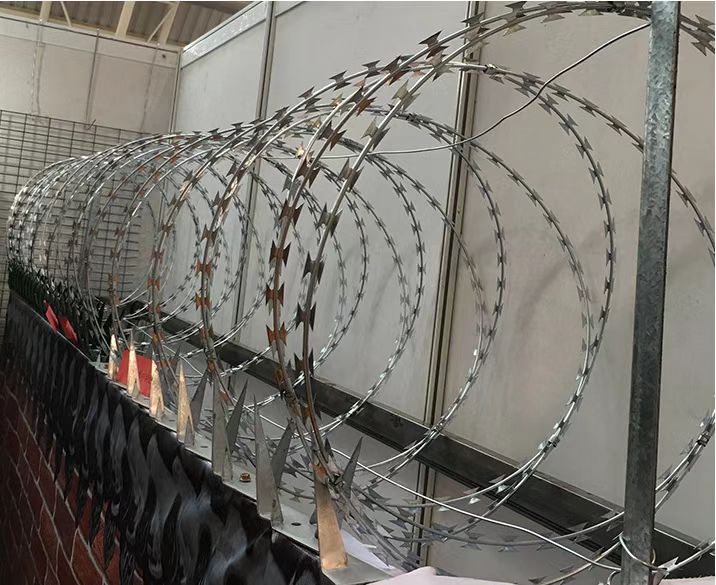 目前, 各國(guó)已將刀片刺網(wǎng)廣泛用于軍事重地、監(jiān)獄、政府機(jī)關(guān)、銀行、警戒區(qū)圍墻、私人住宅、別墅的圍墻、門窗、高速公路、鐵路護(hù)欄、以及邊境線等防護(hù)保安。
