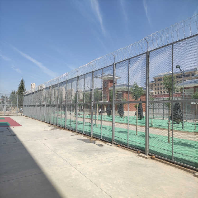監(jiān)獄框架式隔離網是一種常 用的監(jiān)獄防護產品,它由鋼材制成,具有堅固耐用、安全可靠的特點。監(jiān)獄框架式隔離網主要用于監(jiān)獄、拘留所、看守所等場所的圍墻建設,旨在防止犯罪分子越獄、外部人員闖入等安全事件的發(fā)生。