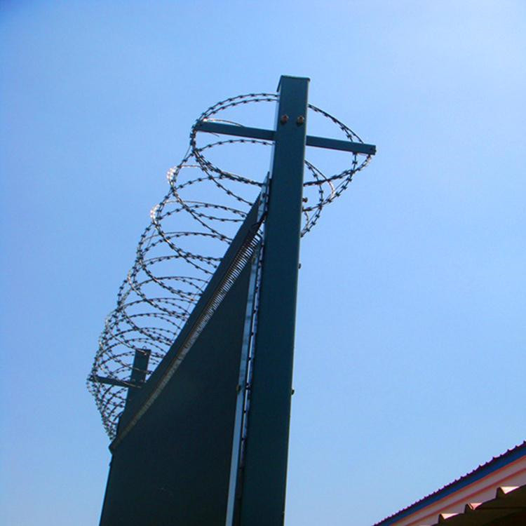 監獄鋼網墻是非常重要的監獄安全防護設施,由焊接鋼網加蛇腹形刀刺網組合而成。監獄鋼網墻具有結構新穎、堅固緊密、網面平整、網孔均勻、刀鋒銳利、防攀爬、抗腐蝕性強等特點。建設于監獄的內外墻地面及高墻之上,網墻內側或頂部加裝蛇腹形刀刺網,形成一道高不可攀、難以逾越的隔離障礙。配合高壓打擊電網、各種監控報警設備確保監獄安全萬無一失。