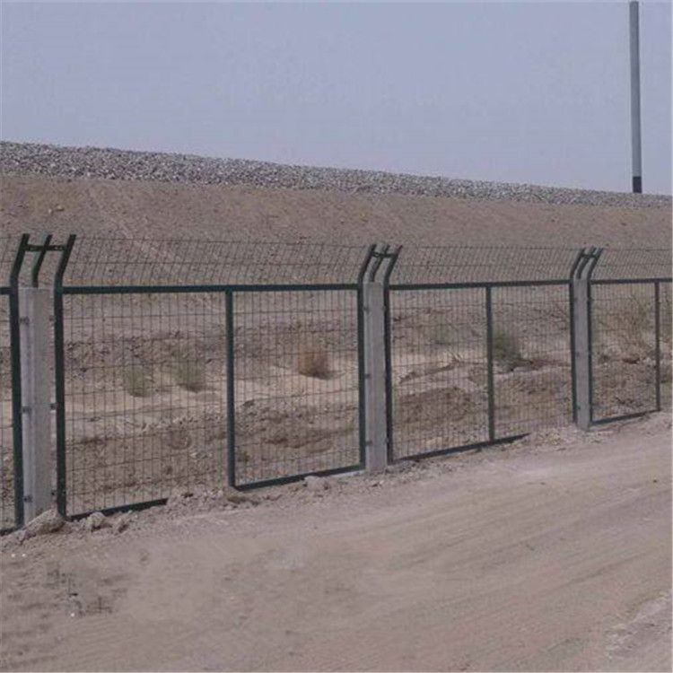 鐵路防護(hù)柵欄顧名思義就是用在鐵路兩側(cè)的圍欄,常用的搭配形式為平面為1.8米高*3米長的邊框護(hù)欄,頂部設(shè)計為蛇腹型刀刺網(wǎng)而構(gòu)成的。這樣的設(shè)計就是為了防止行人胡亂攀爬,隨意穿行鐵路,以免發(fā)生鐵路交通事故,給國家?guī)聿豢晒懒康膿p失,想到鐵路兩側(cè)擁有鐵路防護(hù)柵欄時,也會時常發(fā)生那些令人觸目驚心的慘重事故,例如:小到農(nóng)村羊倌放羊隨意穿行鐵路損失幾頭羊。中到行人與列車相撞的悲慘事故,上薄公堂。重到那些窮兇極惡的盜匪,去強行扒掉鐵軌賣錢,造成運營列車脫軌,從而發(fā)生重大型交通事故。這些血淋淋的教訓(xùn)時常提醒著我們“鐵路線上無小事”人命關(guān)天事關(guān)重大,容不得一絲馬虎。