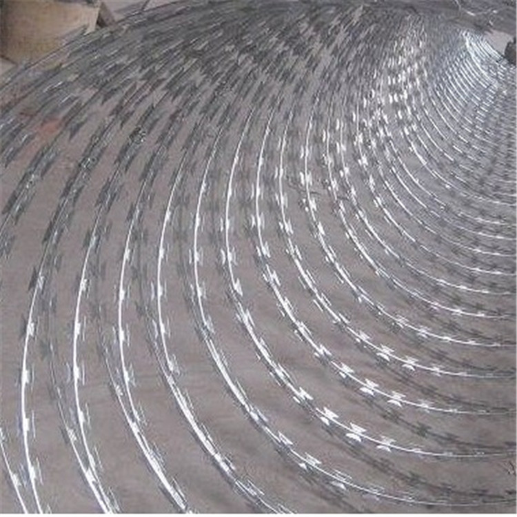 噴塑刀刺網:噴塑刀片剌網(pvc刀片剌網、涂塑刀片剌網)又叫做噴塑刀片剌繩、噴塑刀片剌絲是刀片刺繩出產出來今后,要停止防銹處置所發作的噴塑表面處置使其具有相當好的防腐才干,表面光澤漂亮、防水作用好、施工便當,經濟適用等優良特征噴塑刀刺網是將塑料粉末噴涂在制品刀刺網上的一種表面處置方法