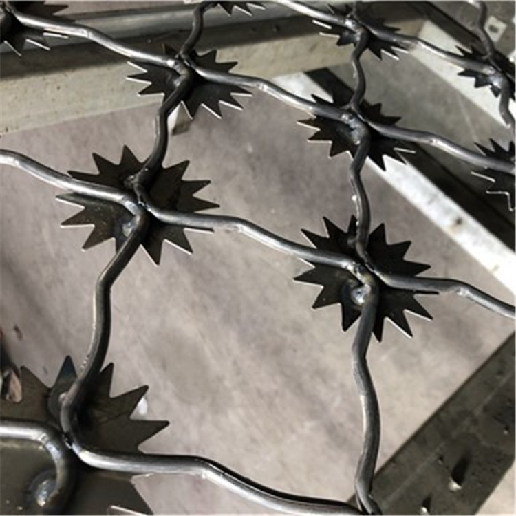 刀片刺繩監(jiān)獄防護(hù)網(wǎng)刀片刺網(wǎng)材料有低碳鋼絲、冷扎熱鍍鋅金屬薄板,不銹鋼板材,不銹鋼線等:加工工藝:由熱鍍鋅鋼板或不銹鋼板金屬薄板沖壓模具出尖銳的刀塊狀,高支撐力鍍鋅鐵絲也許不銹鋼線做銅芯電纜組成的阻絕元器件。因?yàn)榈镀汤K造型相互不容易觸碰,因此能抵達(dá)很好的安全防護(hù)隔絕功效,還具備好看、經(jīng)濟(jì)發(fā)展有效、防阻功效好、工程施工方便、長(zhǎng)壽命等出色特點(diǎn),包裝采用內(nèi)防潮紙外蛇皮口袋,原材料采用Q235碳素鋼,網(wǎng)眼:50*100毫米、70*150mm等,絲距:3.8-6mm,管經(jīng):48mm*48mm、60mm*60mm*3mm等,非常規(guī)范型號(hào)規(guī)格可依據(jù)用戶需求訂制。
