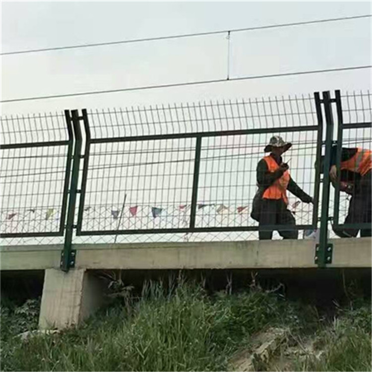 鐵路防護柵欄也叫鐵路護欄網(wǎng)、鐵路防護網(wǎng)、鐵路防護柵欄,是金屬網(wǎng)片防護柵欄的樣式之一,主要作用與鐵路倆側(cè)防止防止行人、車輛穿越,保障行車安全的作用,防護柵欄的結(jié)構(gòu)是由金屬網(wǎng)片、鋼筋混凝土立柱組成。